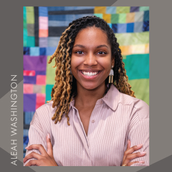Recent Kansas City Art Institute graduate Aleah Washington’s exhibition Slowly Drifting includes a selection of vibrant quilts and colored pencil drawings. Washington’s quilts piece together stories of oppressive systems such as redlining and explore complex issues like displacement, urban decay, and our relationship to natural resources.