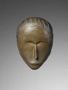 (Second page, lower left image) Fang Mask, African, Gabon, early 20th century. Bronze, 11 ¼ x 15 ½ x 5 7/8 inches. Musée du Quai Branly-Jacques Chirac, Paris. © musée du quai Branly – Jacques Chirac, photo Patrick Gries, Bruno Descoings.